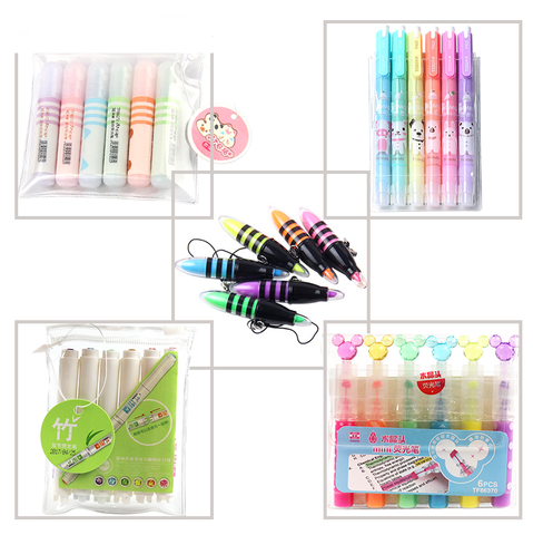 Tico TF625 5 kids design cute 6/set set di evidenziatori retrattili 6 colori per forniture di cancelleria scolastica
